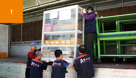 작업환경에 따라서 1TON/2.5TON/5TON 차량으로 운송작업 진행